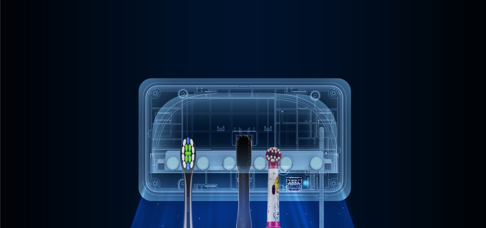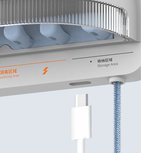 三種尺寸的卡槽設計可適應市面上大多數主流品牌的牙刷、電動牙刷和一些刮胡刀。